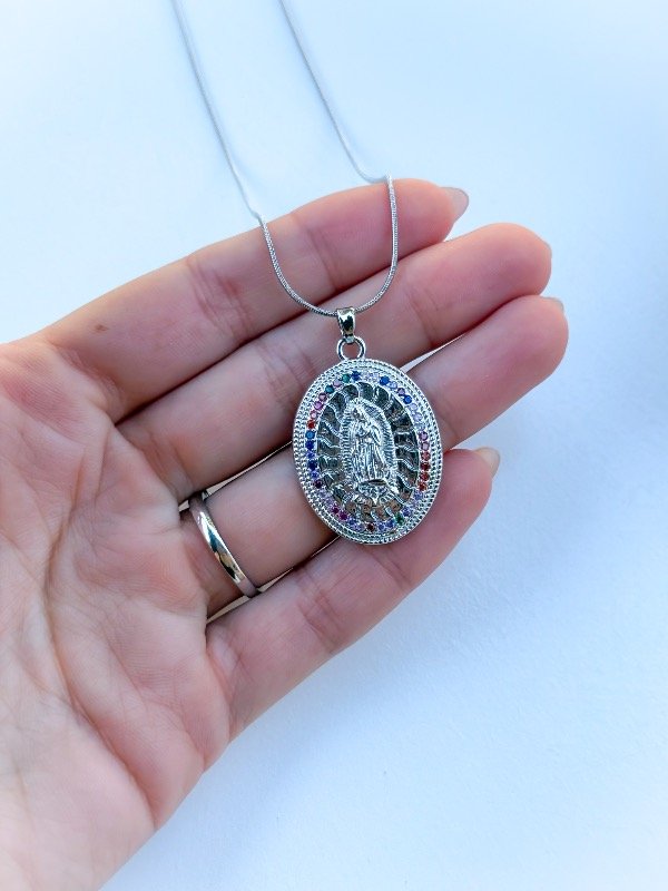 Collar religioso de acero quirúrgico tradicional con strass. Medida: 45 cm + 5 de cadena extensible