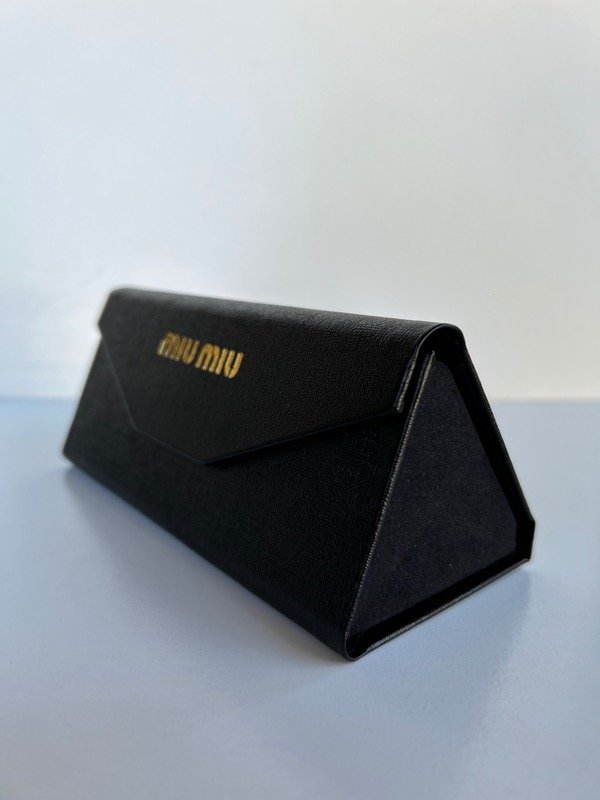 Igual a originales con funda rígida y protección UV 400. Vidrio frontal y patillas internas marcados. Incluye funda MiuMiu