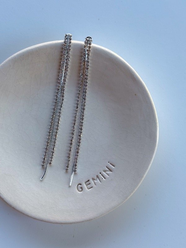 Tiras de strass plateado. Livianos, súper finos y elegantes. Pasante de acero quirúrgico.